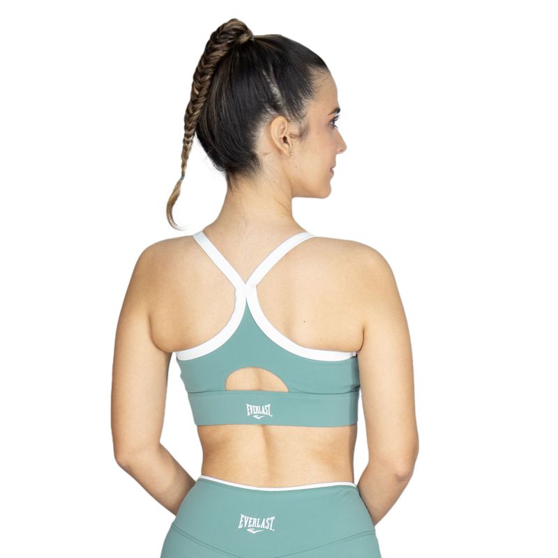 Bra deportivo para mujer confeccionado en mezcla de poliéster y spandex, que brinda elasticidad, soporte y comodidad durante el entrenamiento. Su diseño deportivo permite ajuste al cuerpo, transpirabilidad y libertad de movimiento, ideal para actividades fitness o uso diario con el estilo activo de Everlast.